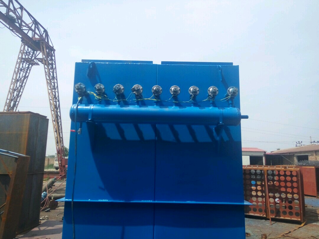 2、箱式噴吹脈沖除塵器 箱式噴吹是一個袋式用一個脈沖閥噴吹,不設噴吹管,一臺除塵器分為若干個袋室。裝設與袋式匹配的若干個脈沖閥。箱式噴吹的大優點是噴吹裝置簡單,換袋維修方便。但單室濾袋數量受限制。如果濾袋數量過多,會影響濾袋的清灰效果。